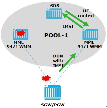 當一個MME宕機時,根據國際規范的規定,該MME上附著的用戶會到pool中的另一個MME上重新進行強制附著。