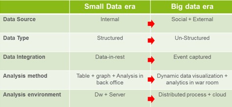 · 數據量(Volume): 企業系統內數據量的增加是由交易量以及其它傳統數據類型和新數據類型引發的。太大的數據量不僅在存儲方面,在大規模分析方面都會出現問題。
