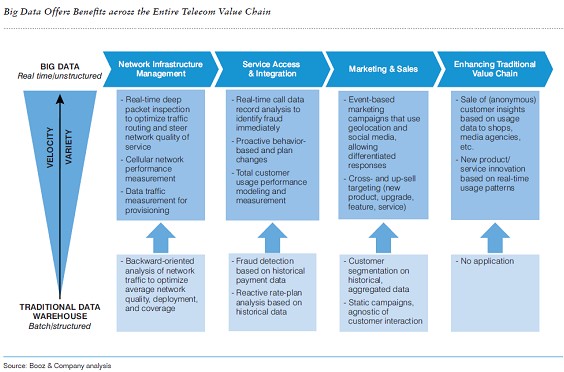 電信市場的滲透率通常很高(近100%)。作為一個壟斷行業,每個國家通常只有三或四家電信運營商(有些運營商擁有超過1億用戶),這意味著,運營商通常能夠接觸到大量客戶的數據。