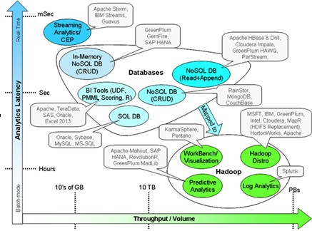 上圖描述了大數據中的軟件技術分類,并使用插圖提示顯示了每個分類中的廠商/產品。目前共有三種頂層的軟件技術分類: