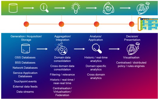 大數據的最終目的是整合和關聯所有信息來源,以便生成一個完整、透明、全面的視圖,描述每個客戶或家庭與運營商之間的所有交互。