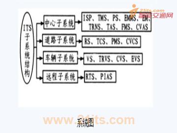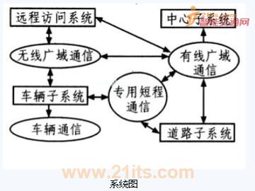 智能交通系統系統組成ITS由中心、道路、車輛和遠程訪問4個模塊化的子系統構成,它們共享通用的通信設備,如圖1所示。
