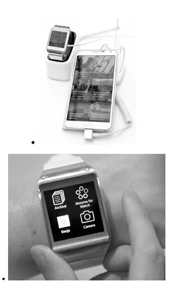 GALAXY Gear智能手表有一塊1.63英寸SuperAMOLED材質屏幕,分辨率為320×320。目前這款手表僅支持采用Android 4.3以上的GALAXY系列產品,也就是說目前為止只有今天剛剛發布的GALAXY Note3和GALAXY Note 10.1兩款產品能與它連接。它通過藍牙與手機(或平板)連接,之后每當手機收到新短信、郵件以及其他消息時,GALAXY Gear便會提醒用戶,并提供快速預覽。例如,如要查看GALAXY Gear上所預覽信息的詳細內容,只需拿起GALAXY Note 3手機,“智能傳遞”(Smart Relay)可讓手機和Gear設備同時顯示同一個內容。GALAXY Gear支持三星SVoice語音命令,通過手表可以完成調鬧鐘,撥出電話等功能。