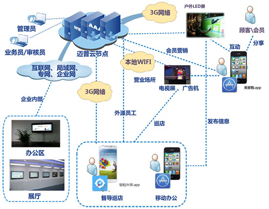 肖總:邁普云是中國首創的多媒體信息發布與位置服務行業應用云平臺,是邁普公司在提出“企業網絡和行業應用雙翼齊飛”的發展愿景之后,將邁普云戰略與原有的企業網基礎設備的產品戰略相結合,運用領先的多媒體云技術和創新的商業模式使邁普云戰略成為“網絡智能服務”的重要落地途徑之一。