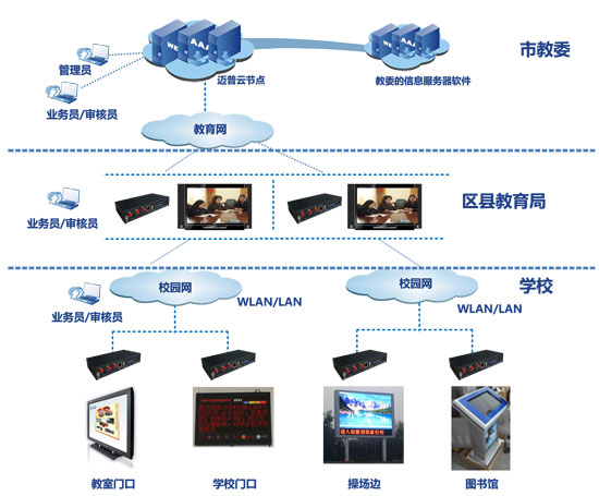 第三個是教育云—校園文化宣傳解決方案。在教育系統,邁普云能提供從市教委到每所學校系統內的信息聯播和教育資源共享網絡,同時通過因特網連接到學生家庭,并提供配套的硬件終端,實現教育資源整網覆蓋解決方案。家長、教師等用戶可通過有監控審計的評論實現與系統的互動,APP 等軟件應用還可做到定制化的家庭點播功能,使學生實現家校一體的學習,并與學校隨時保持信息溝通,充分了解學生的狀況與學校的動態。邁普還將與國內更多的教育資源提供方合作,共同打造一個優質教育資源共享平臺,充分提升平臺價值。