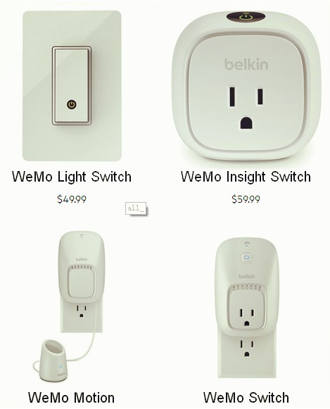 WeMo的方案主要包含了下面幾個:WeMo Switch、WeMo Insight Switch、WeMo Light Switch和WeMo Motion。