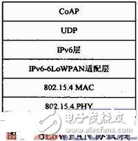 協議棧的下兩層用802.15.4 PHY/MAC,中間加一個IPv6-6LoWPAN適配層,傳輸層使用UDP協議,應用層使用CoAP協議。它包括REST的最小子集和到HTTP的無狀態映射。通信主機使用CoAP協議,能夠支持穩定的通信架構,以實現傳感器節點與互聯網的無線連接。