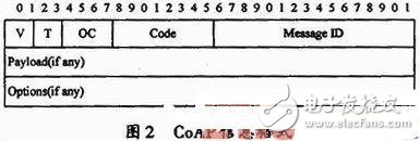由于無線物聯網中的設備很多都是資源受限型的,這些設備只有少量的內存空間和有限的計算能力。為此,IETF(Intemet Engineering Task Force)的CoRE(Constrained RESTful Environment)工作組為受限節點制定相關的REST(Representational State Transfer)形式的應用層協議。這就是CoRE工作組正在制訂的CoAP(Constrained Application Protocol)協議。