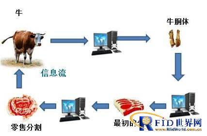 RFID技術在畜牧業的應用主要有兩個方面,一方面是建立畜牧管理系統進行動物的精細養殖,另一方面是建立動物的追蹤管理系統。當前牛羊肉的產品安全已經成為供應鏈中的關鍵因素,鑒于此,全世界20多個國家和地區對食品的生產過程都采用RFID技術進行跟蹤與追溯,并獲得了良好的效果。基于RFID的追蹤系統對牛羊肉的生長、加工、儲藏及零售等環節的管理對象進行標識并進行連接,然后將這些標識用條碼與人工可識讀方式表示出來,一旦產品出現衛生安全問題,可以通過這些標識進行追溯,準確的縮小安全問題的范圍,查出問題出現的環節,這樣就可以阻斷問題貨源流入市場,可以進行有效治理。