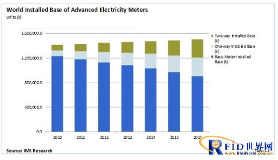 據市場調研公司IHS預測指出,到2016年年底,全球智能電表的安裝量將翻番,推動通信電表達到35%左右的滲透率。IHS表示,截止到2011年年底,在全球已安裝的14.3億臺電表中,帶有“智能”通信功能的電表占比不到18%。而且這些電表包括老式的單向先進抄表系統(AMR)和帶有通用分組無線業務(GPRS)功能的商業與工業電表,以及可提供雙向通信的住宅用智能電表。