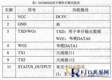讀卡模塊采用125kHz射頻讀卡模塊(型號為M106BXN),其電源為5V±10%,讀卡電流為29mA,讀寫距離為6~16cm,適用于PC機或8位UART的單片機,波特率9600、19200可選,射頻讀卡模塊可工作于主動方式和被動方式,在主動方式下,當RFID卡靠近模塊時,卡號連續從串口輸出;在被動方式下,當有RFID卡靠近模塊,同時模塊的CLK端為下降沿時,串口才輸出卡號。本設計采用11.05926MHz晶體,波特率為19200的讀卡模塊,工作方式為主動方式,讀卡模塊引腳功能如表1所示。