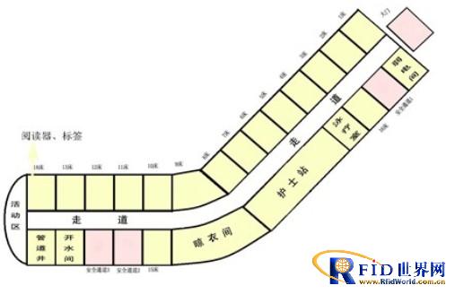 在覆蓋網絡的區域,佩戴在醫務人員或病人身上的腕帶標簽、周期性地發出信號,服務器接收信號。根據讀到的信號的次數來判斷出醫務人員或病人所處的位置,實現對醫務人員或病人的精準定位。