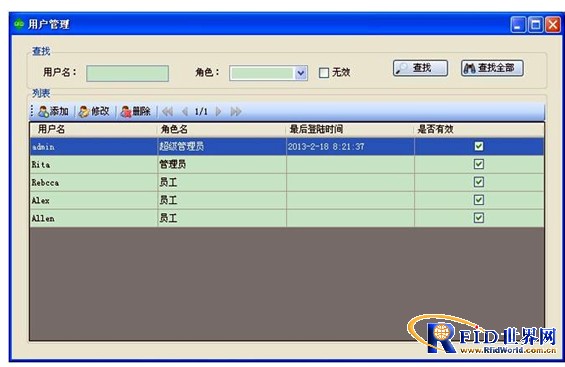 操作人員可以使用考勤數據采集軟件的后臺部分進行一些基本資料的修改(如用戶查找、添加、修改、刪除、權限等基本信息),如圖所示: