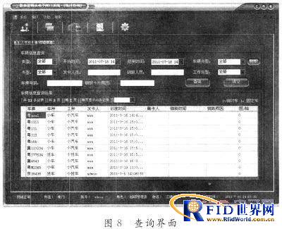 車輛基本信息查詢是查詢所有已發車輛身份卡的信息。行跡信息查詢是查詢所有允許通行的車輛的記錄信息。此模塊按照界面所能提供的屬性進行相應模塊的查詢操作,支持組合條件查詢,查詢部分為提供更快的查詢效率,添加緩存機制。根據搜索內容的關鍵字,可優先從本地緩存中取數據,不用向服務器請求。