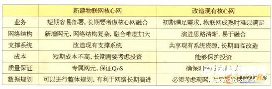目前物聯網的發展處于階段2,可以有兩種發展策略,一種是新建物聯網的核網,另一種是改造現有核心網來實現物聯網業務。現將兩種策略進行對比,如表1所示: