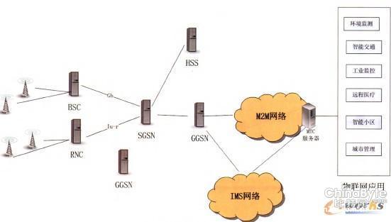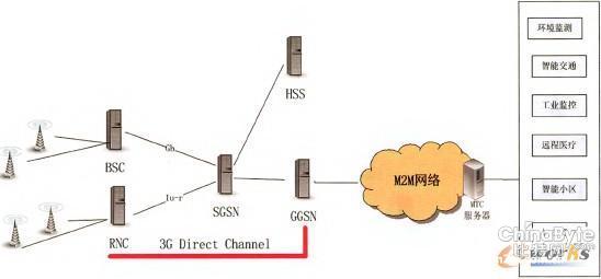 融合的關鍵在于引入新型硬件架構的大容量GGSN設備,在提供傳統數據接人功能的同時,還需要提高設備性能、引入安全控制能力、支持QoS協商及業務分析能力;而為了滿足物聯網廣泛的業務需求,GGSN還應具備與第三方網絡及ASP的互聯功能等。專用M2M設備可直接接人GGSN,避免經與其他業務網元協商后再接入的方式,簡化接人流程,減少業務延遲;并平滑升級支持IPv6,具備完善的負荷緩沖和控制機制,滿足海量M2M終端的接人需求。同時要對HSS有改造需求,HSS應具備注冊物聯網用戶信息,包括時間信息、地址信、管理信息等,并具備可以激活物聯網設備的SIM卡功能等。