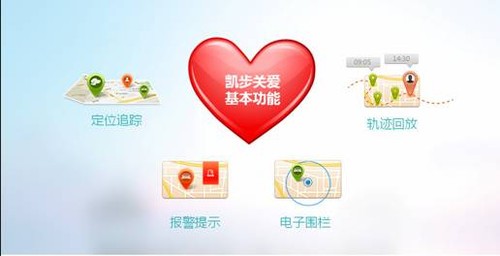 凱步關愛產品的基礎功能是定位,而在定位的基礎上完善了:時時定位、軌跡回放、電子圍欄、報警提示四大基礎功能。在基礎功能改善的前提下凱步關愛獨用的科技創新,主要包括以下四大突破:
