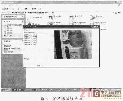 (5)在PC機上運行客戶端程序,成功接收到JPEG圖像,運行界面如圖4所示。