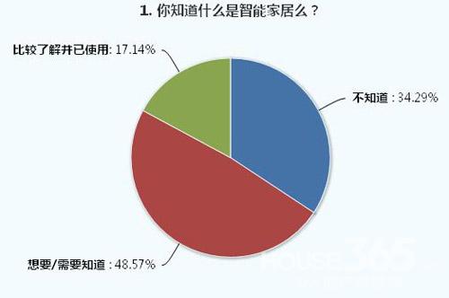 調查結果顯示,有34.29%的消費者對智能家居完全不了解,17.14%的受訪者表示自己非常了解并已經開始使用,但是仍有有近一半的消費者表示雖然不是非常了解,但是很想進行詳細的學習。在調查過程中小編發現,大家對智能家居的理解還是存有誤區的,網友吳先生認為,智能家居就是家用電器的遙控化;黃女士則表示,智能家居應該是高科技的廣泛應用,類似于機器人的日常使用等,正常的家居生活不需要如此高端大氣上檔次。