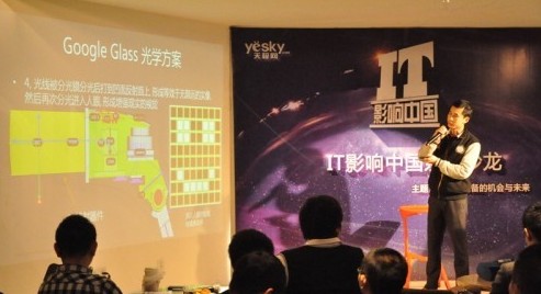 電子科技大學光電信息學院謝煜博士在本期沙龍現場,分享了對“Google Glass的光學方案”研究,并從專業視角展望了可穿戴行業的發展未來。他表示,圖像產生和圖像投射是Google Glass這一類產品的共同點,個人娛樂、運動健身、健康醫療等領域都有很好的發展前景。