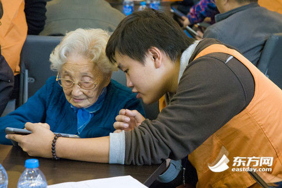東方網11月4日消息:一堂別開生面的移動終端應用課近日在天平社區開講。98歲高齡的天平社區調解高手張秀清女士也來到課堂中,與40多位社區居民一起學習平板電腦使用方法。課程中,張女士還利用平板電腦與現場的一位學員進行了視頻連線,當場調解了鄰里間的小矛盾。