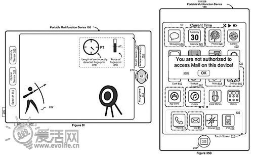 蘋果的專利文檔中描述了將Home鍵用作觸控板的新技術,操作方式有些類似于黑莓Curve系列全鍵盤手機之上的觸控板。用戶可通過在Home鍵傳感器上進行指紋的“轉向”等手勢實現系統操作。而且傳感器還能測定手指在Home鍵之上停留的時間和壓力的大小,用以實現更為有趣的應用,未來或可用于游戲和軟件中。