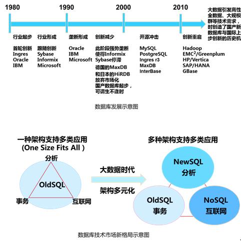 大數據時代的到來,使得傳統國產數據庫在處理百TB以上、特別是PB級數據的查詢、統計、分析等應用時,遇到性能上的瓶頸。面對電信、金融、安全、政企等大數據量應用,包括電信話單、金融細帳、智能電網、經營分析、公安網監、輿情監控、審計稽查、應急指揮等,用戶體驗往往不可接受。海量數據的3V(數量Volume、速度Velocity、多樣Variety)挑戰著傳統數據庫曾經非常成功的"一種架構支持多類應用"模式。互聯網和大數據應用的沖擊下,世界數據庫格局在發生革命性的變化,通用數據庫(OldSQL)一統天下變成了OldSQL、NewSQL、NoSQL共同支撐多類應用的局面。