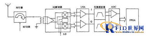 讀寫器的通信效果受到發射機輸出功率、接收機靈敏度、收發天線增益、收發隔離度、標簽功耗、標簽天線增益,以及環境狀況等參數的影響.其中,發射端最大有效全向發射功率(EIRP)受到國家無線電發射設備管制,收發隔離度受到環行器等器件隔離度限制(一般只能達到25dB),在標簽、天線和環境等參數一定的條件下,接收機的性能對讀寫器整機性能起決定性作用。