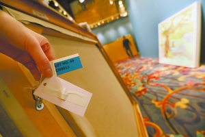戴著白手套的工作人員謹慎地拆開木板箱,一層層揭開白色泡沫包裝,艾軒的作品《西藏女孩》露出它濃郁的色彩。畫框的右上角,貼有一張標簽,大小看上去就像是超市里常見的商品價簽。北京市科學技術研究院的相關負責人介紹說,這枚小標簽就相當于這幅藝術品在京期間的電子身份證,自從畫作前幾天從美國運抵首都機場時,就已經由北京海關的工作人員將其貼在了畫框上。