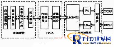 系統的主控部分為PC,結構圖如圖2讀寫器的結構圖左邊部分所示。主控部分的工作主要包括:完成基帶信號處理、標簽識別處理和驅動層與應用層的數據通信。
