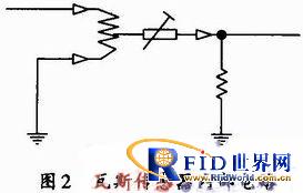 瓦斯濃度傳感器KGS-20是以二氧化錫為基本敏感材料,專門用于可燃氣濃度檢測的一種半導體型氣體傳感器。有極高靈敏度和極快的響應速度且功耗低。用于對瓦斯等可燃氣濃度的檢測。工作溫度為-22~50℃;工作濕度范圍為0%~95%RH;采用直流電源供電,電壓范圍為3~5 V,非常適用于對瓦斯等可燃氣濃度的檢測。負載電阻RL上的電壓變化可以反映出傳感器敏感組件的電阻RS的變化。傳感器內部電路如圖2所示。KGS-20輸出的模擬信號經A/D轉換后可得到非常精確的濃度值。