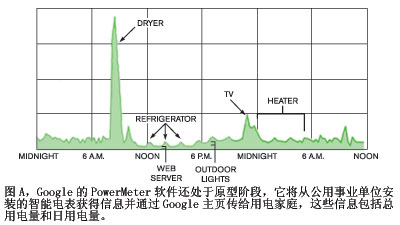 在資源管理方面有一個公認的說法:無法測量就談不上改進。Google公司的慈善分支Google.org稱:“我們相信,每個人都有權獲得自己的用電信息,從而對能源使用作出更明智的選擇。”因此,Google正在開發軟件,讓每個人都能在Google的主頁上顯示自己家庭的用電情況(參考文獻A、圖A)。
