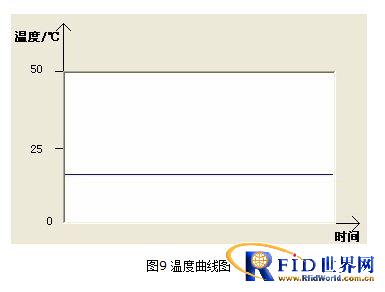 PC 端使用Visual Basic 6.0 編寫上位機程序,上位機將溫度數據繪制成曲線并寫入文本。溫度曲線如圖8 所示,其中溫度值的精度為1 攝氏度。通過對溫度曲線圖和文本數據的對比觀察,發現溫度數據無異常, 數據沒有出現丟失情況。