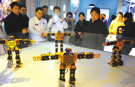 昨天,智能裝備研發園內,跳舞機器人吸引眾人圍觀。