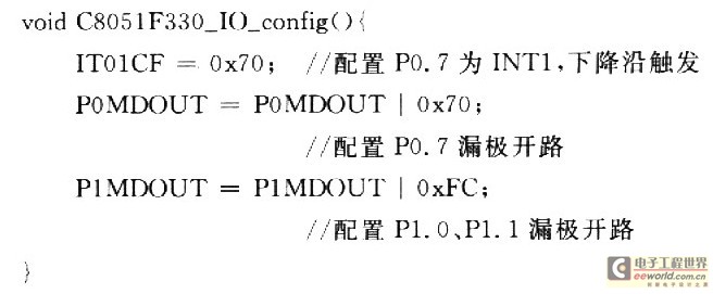 C8051F330的P0.7腳接收到NPX發送的下降沿后,跳入外部中斷1的中斷子程序。在中斷子程序中,開啟定時器0計時,同時定義一個變量unsigned char bit_cntr計算讀入數據的位數。在P1.O腳接收到一個下降沿時,單片機從P1.1腳讀入1位數據,同時bit_cntr加1。當bit_cntr的值為17時,表明數據接收完畢,置標志位Data_Flag通知主程序接收到數據,關閉定時器0退出中斷子程序;若NPX在發送數據時出錯,則傳送的數據不到17位。這種情況下,定時器O將會計數到溢出,程序查詢到定時器O溢出后將清除標志位Data_Flag,同時退出中斷子程序。