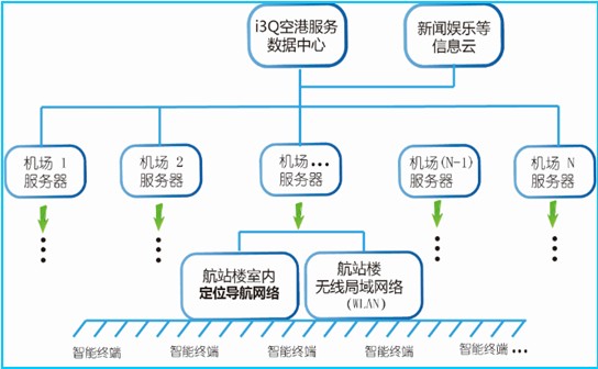 智能終端主要包括大屏固定島、移動島以及智能手機三種。固定島放置于機場的出發大廳及到達大廳,用于旅客自助搜索查詢信息。移動島即i3Q候機寶,在機場行李車上安裝終端產品,向旅客提供行李載運、導航(室內GPS)、登機引導、登機提醒、休閑娛樂等服務。