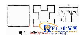 無線射頻識別(Radio Frequency Identification,RFID)是一種借助于電磁波傳播和感應而進行的自動識別技術,該技術作為一種快速、實時、準確采集與處理信息的高新技術和信息標準化的基礎,被列為21世紀十大重要技術之一。目前已廣泛應用于物流管理、動物識別和電子收費等領域。無源UHF RFID技術具有工作距離遠和數據傳送速度快等特點,被認為是最具有應用前景的RFID技術。在UHF RFID系統中,天線性能的高低直接影響系統的識別距離,是一個非常重要的器件。隨著UHF RFID技術的發展,小型化、高增益、低成本的天線越來越受關注。在眾多可適用于UHF RFID系統閱讀器的天線中微帶貼片天線因其結構簡單、便于加工制作而被更多的研究和應用。傳統的矩形微帶貼片天線尺寸為諧振頻率的半波長,天線的尺寸受到嚴格的限制。可以通過提高介質基片介電常數、加載短路探針、加載縫隙等方法實現貼片天線尺寸的減小,但是天線的性能會受到很大的影響,尤其是天線的增益和帶寬。本文在這樣的背景下設計了一款小型化、高增益微帶天線。該天線基于Minkowski分形結構,并在其基礎上通過矩形切角來實現圓極化,滿足UHFRFID系統對天線的要求。該微帶分形天線的中心