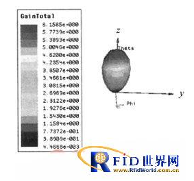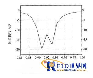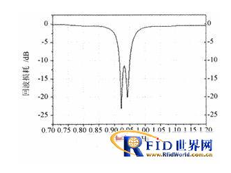 通過ANSOFT公司的電磁仿真軟件HFSS 11.0對該讀寫器天線進行仿真與優化,天線的回波損耗S11參數仿真結果如圖6所示。從圖中可以看到天線在900~925 MHz之間回波損耗小于-12 dB,阻抗帶寬為8%,滿足了UHF RFID系統的要求。