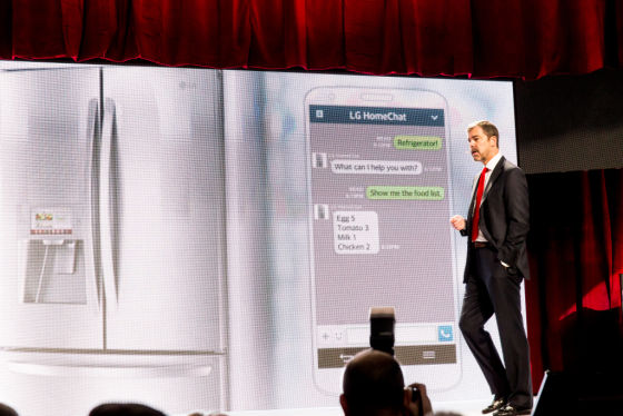在LG的演示視頻中,使用者向冰箱發送信息后,就能知道冰箱中還剩多少瓶啤酒;向電視發送圖片后,就能瀏覽照片在大屏幕上的顯示效果。通過HomeChat,LG的智能廚具甚至還能在使用者準備做飯時向他發送菜譜。人們與家電的交流被加深了。