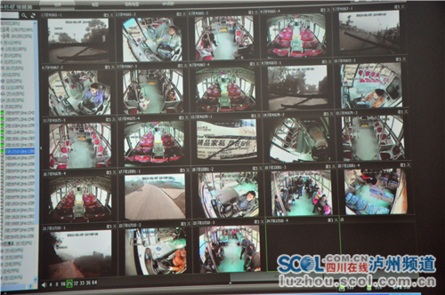 記者在公交公司安全監控中心看到,在安全監控中心,每一輛車都有一個備案,每天工作人員掌握從早上5點公交車運行開始至24點的所有監控。每一輛車的駕駛員左上方,車尾,車門都安裝有攝像頭,能把公交車的運行情況通過視頻及時的傳送到安全監控中心,在監管人員的電腦畫面上顯示出車輛在行駕過程中是否超速、違章,及乘客的安全情況。加強了公交公司對車輛的安全監控,適時調整車輛線路,發班等,起到合理管理。為市民提供便捷,安全的出行服務。