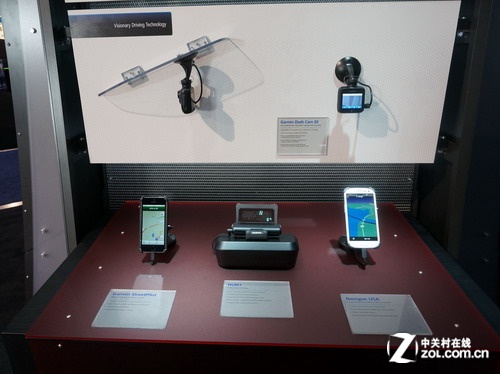 展臺上分別展出了手機APP程序 車內抬頭顯示設備以及行車記錄儀產品