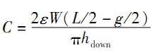 設計標簽天線采用雙層耦合結構,標簽天線的等效電路如圖2所示。下層耦合腔縫隙與上層標簽產生諧振,耦合縫隙g會對標簽諧振頻率產生影響,標簽天線距離地板的高度,即上層介質板厚度Hup具有電容效應,會對諧振頻率產生一定影響,類偶極子標簽天線的粗細W1主要影響感抗。