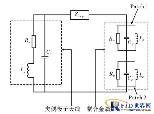 常用的方法是將標簽墊高一定距離,使標簽距離金屬有一定高度,但此法不能無限地遠離金屬表面且不易小型化;還有在標簽下方附著一定特殊材料,如AMC( Artificial Magnetic Conductor)材料或EBG( Electronic Band Gap)介質材料,使得電場在標簽附近的相位有所改變,但此法對提高標簽性能有限且成本過高;另一種方法則是采用特殊的天線結構,如縫隙結構引、耦合結構等使標簽天線與標簽芯片阻抗匹配,而該方法已成為設計抗金屬標簽的一種趨勢。