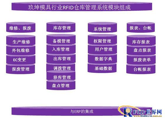 對庫存區域、倉庫中、產品、庫位進行規則設計,實現倉庫和模具的科學管理,在管理手段上,借助RFID技術、無線WIFI技術、手持終端、系統平臺相結合實現快速的備模和領模以及入庫環節。