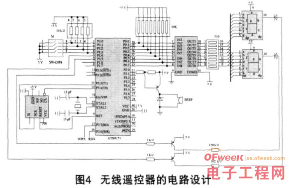 無線遙控功能采用SRWF-1模塊實現,通過89C51進行控制,將C51收到的信息通過串口發給SRWF-1發射模塊,SRWF-1接收模塊將接收到的信息通過串口傳給LPC2210.