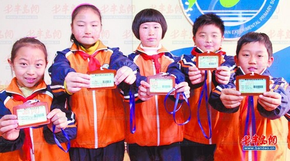 1月16日,嶗山區實驗小學的孩子們正式放寒假,而在放假之前,每個孩子都領到了一份特殊的新年禮物—— 一張卡片,可以直接掛在脖子上。但是這可不是普通的卡片,而是在青島市中小學中第一個試點使用的電子學生證。