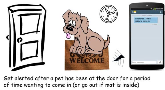 SmartMat還有一個特色之處,可以通過上面物體的重量測出是什么物體,以及物體在上面呆的時間長短。這樣方便了用戶根據體重范圍進行自定義設置,比如如寵物等輕量級的提醒可以忽略,只有人這樣的重量級物體才發送提醒。此外,如果寵物在外面呆了較久時間,SmartMat會提醒用戶是否讓寵物進門;門口有快遞員送來的包裹,用戶也會在第一時間得到提醒。