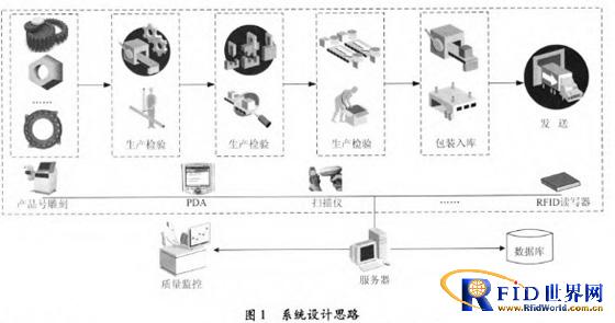 要提高離散制造企業生產質量管理水平,就必須對生產過程中的在制品和關鍵/重要零部件進行實時跟蹤,以掌控生產節拍及相應生產物流信息,保障生產的有序高效運行;與此同時,采集在制品生產的過程數據和零部件數據,可以為產品質量追溯提供支持。系統總體設計思路是利用產品號標識監控產品的生產過程和物流過程,基本流程是應用激光雕刻技術將按一定規則生成的產品號雕刻在在制品或關鍵/重要零部件上,在不方便或無法通過雕刻進行信息記錄時可將打印的條形碼粘貼或系掛在零部件上,在產品生產、檢驗、試驗、驗收、入庫等各個環節利用PDA等設備對產品號、質量等信息進行采集、識別,實現產品生產過程信息的快速收集與實時監控。