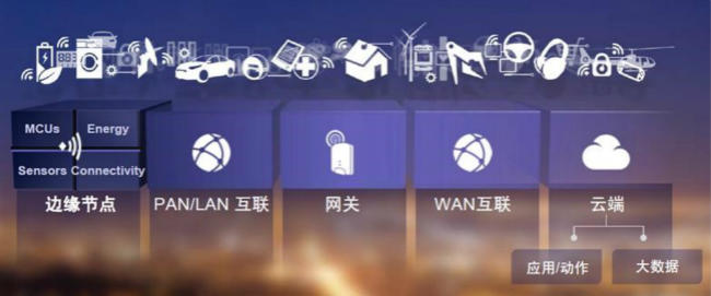 目前,整個物聯網的系統架構可以分為5個部分,分別是邊緣節點、PAN/LAN互聯、網關、WAN互聯和云端,如圖1所示。飛思卡爾發現,很多公司所做的產品無法在邊緣節點、網關以及云端這3個層次中 共用。例如可穿戴設備,或者所設計的智能家居中的某些節點,要對該節點進行控制,可能選擇方案是“入門級低功耗MCU+連接性+傳感器”,這種設計方式是純粹的MCU設計方式。到了網關層次,復雜度會提高,就更偏向于使用高端的MCU,甚至是MPU。到云端就更復雜了,它的設計可能采用應用處理器或者通信處理器。在物聯網的構架中,大部分設備使用不同的技術、工具和開發環境,甚至連編程語言也是不同的。怎樣來解決這個問題呢?