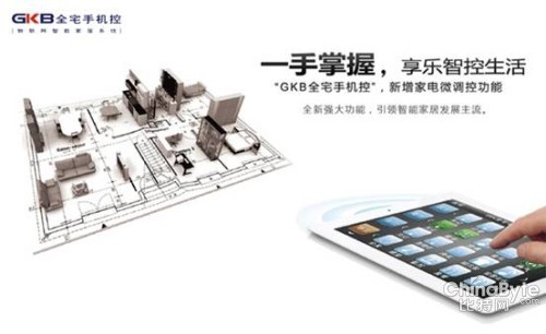 GKB全宅手機控,通過手機或電腦控制家里所有燈光、空調、電視、音響、電飯煲、房門、窗簾等,樂趣無窮,它還可以遠程幫您照顧小寵物和花草,只要手機一個按鈕,就能給家里的魚缸供氧,給花草澆水,解決遠行家里的煩憂。